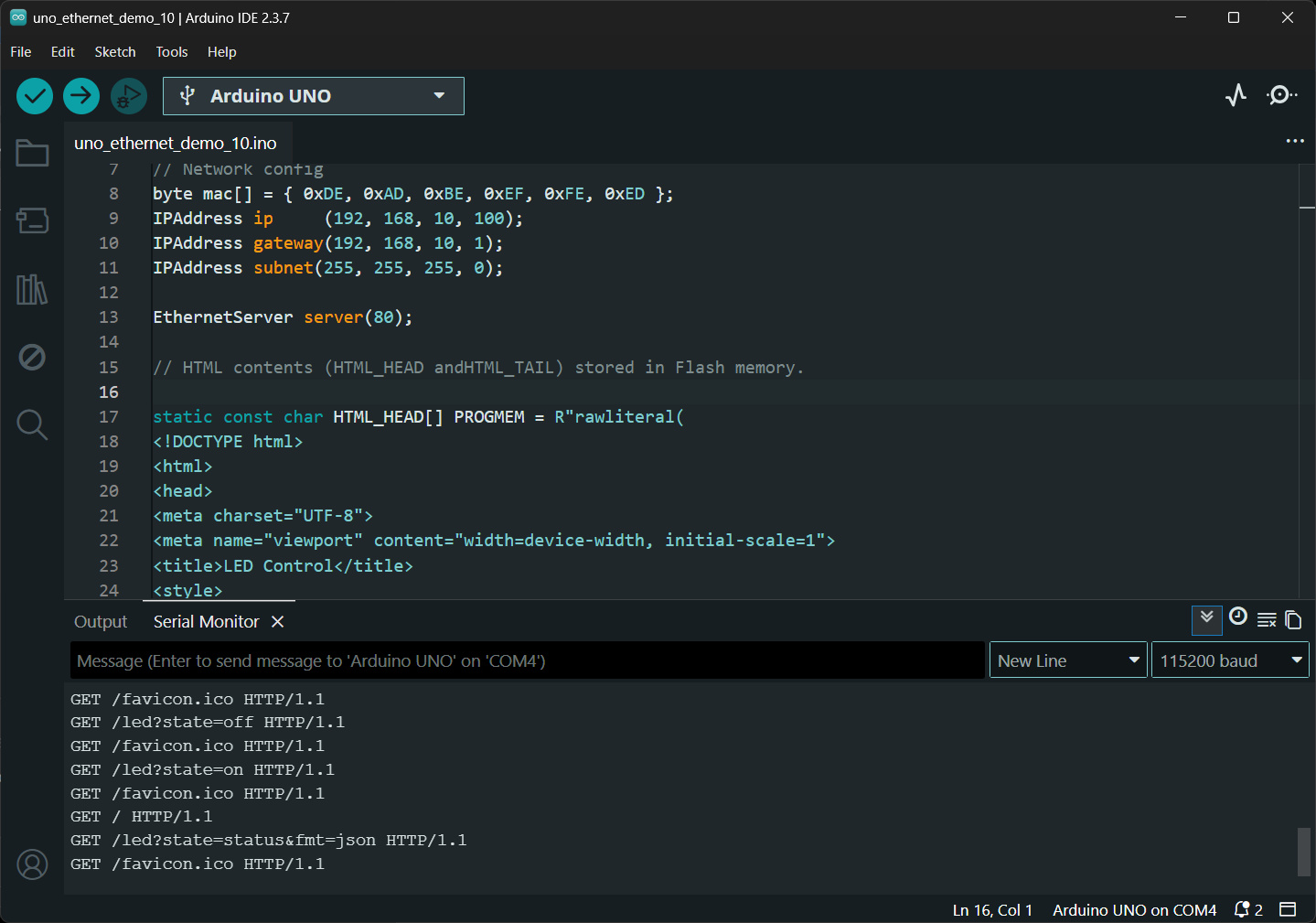 Keywords: Arduino Uno, Arduino Ethernet Shield, Network Programming