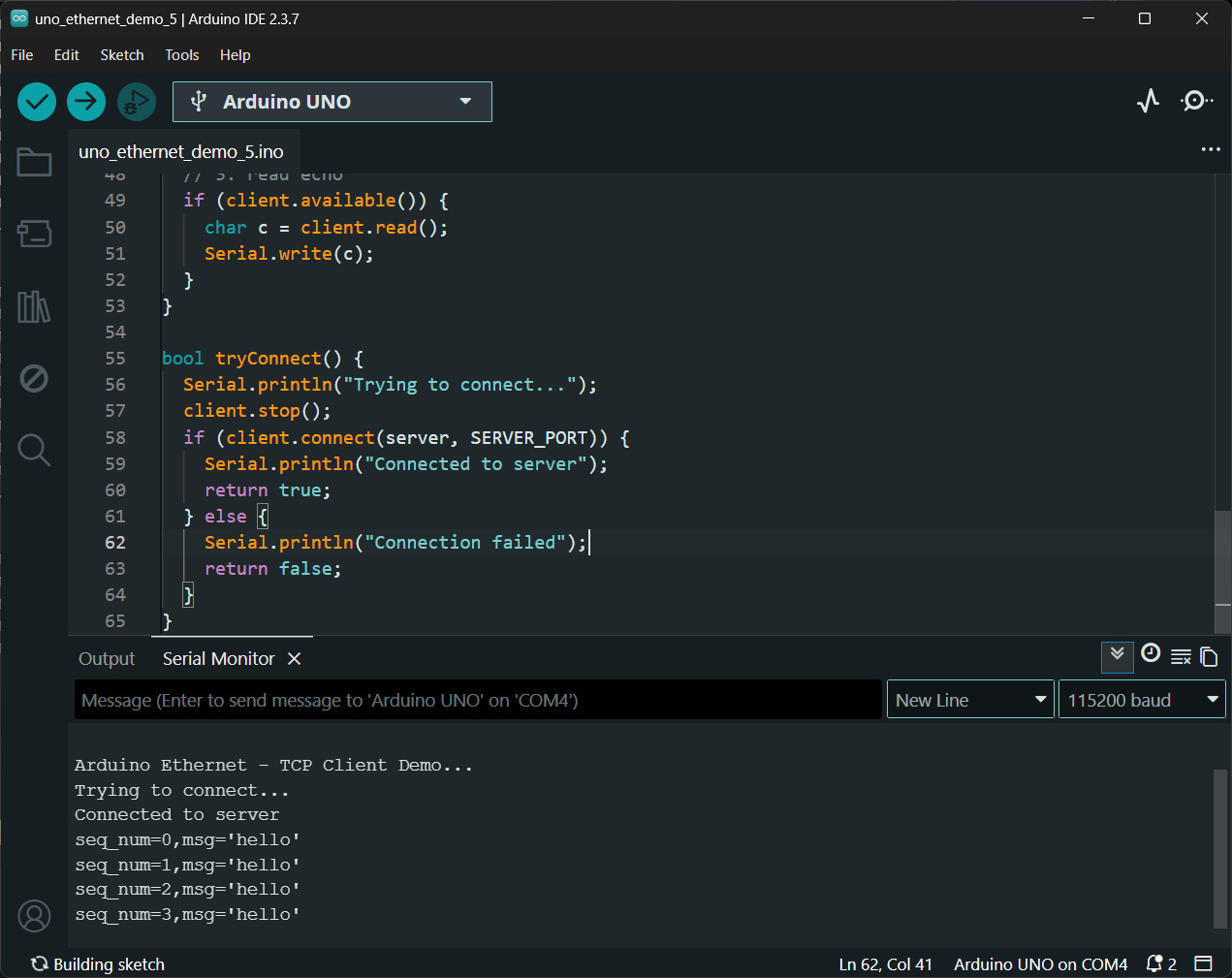 Serial.println("\n\n\nArduino Ethernet - TCP Client Demo...");
