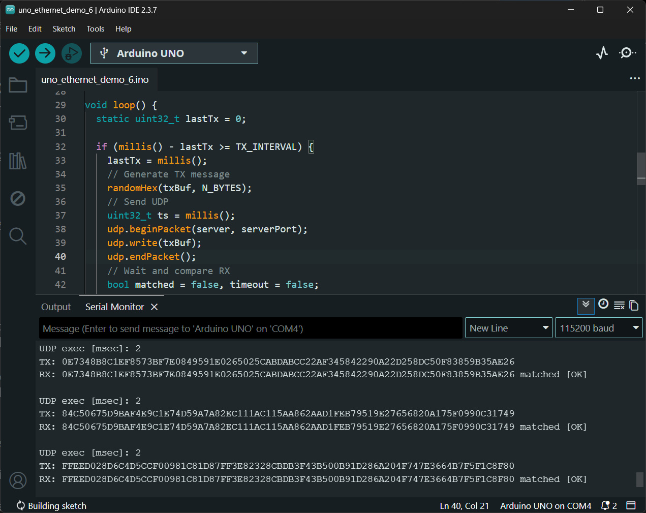 โดยคอยรับแพ็กเกตจาก Arduino Ethernet แล้วส่งกลับไปในลักษณะ Echo