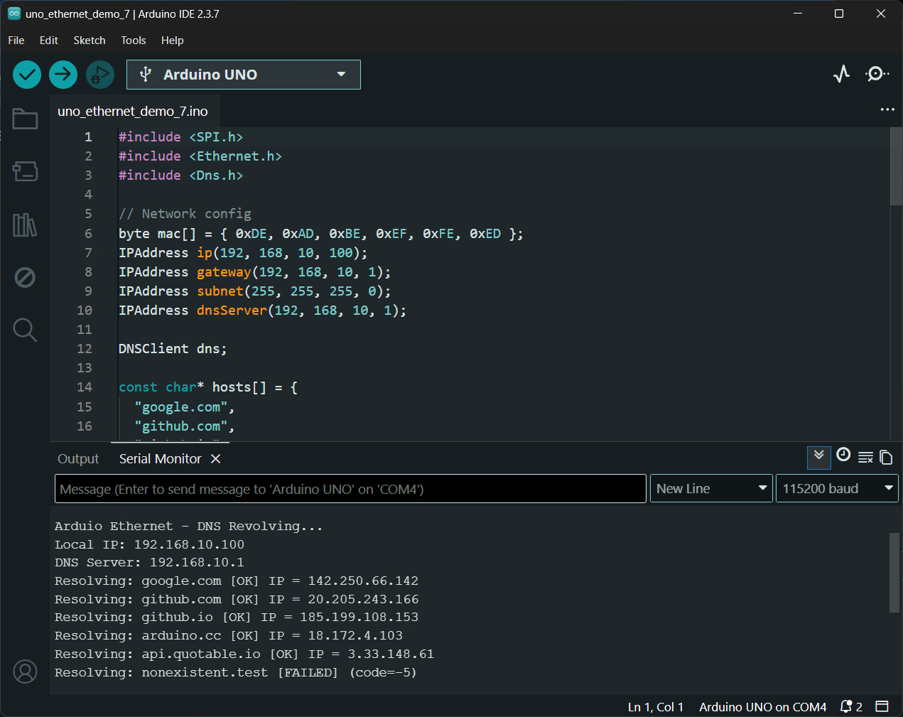 - ตัวอย่างโค้ด: Arduino Ethernet - DNS Resolving
