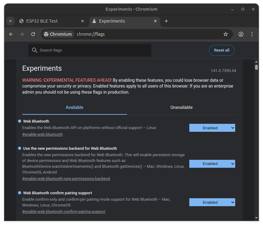 optionalServices: [SERVICE_LED, SERVICE_BTN] // Required to access both services