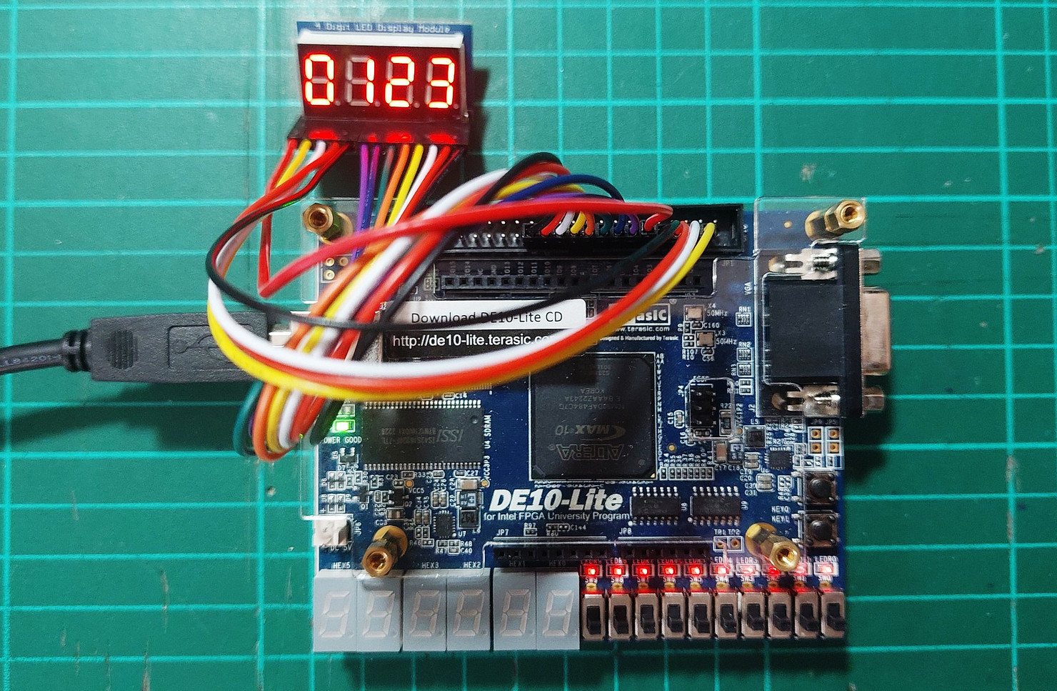 Figure: MAX10 Lite FPGA board + 4-digit 7-segment display module