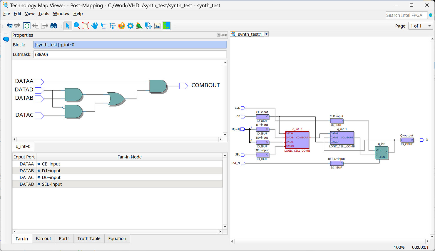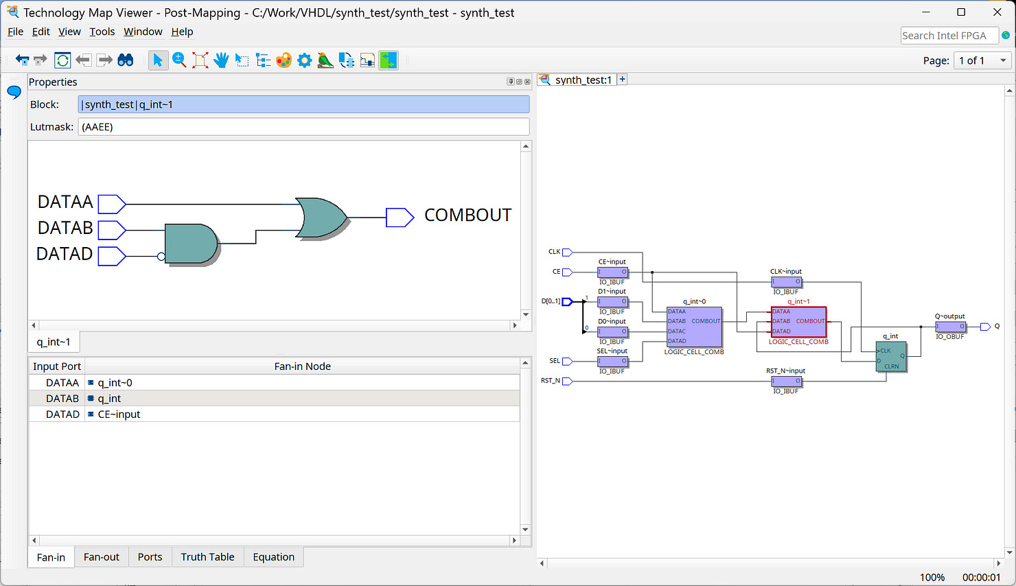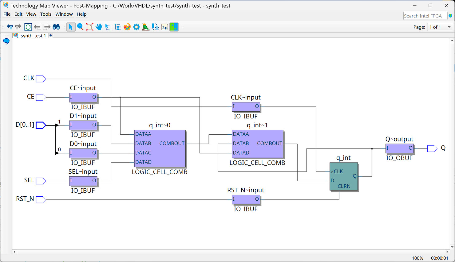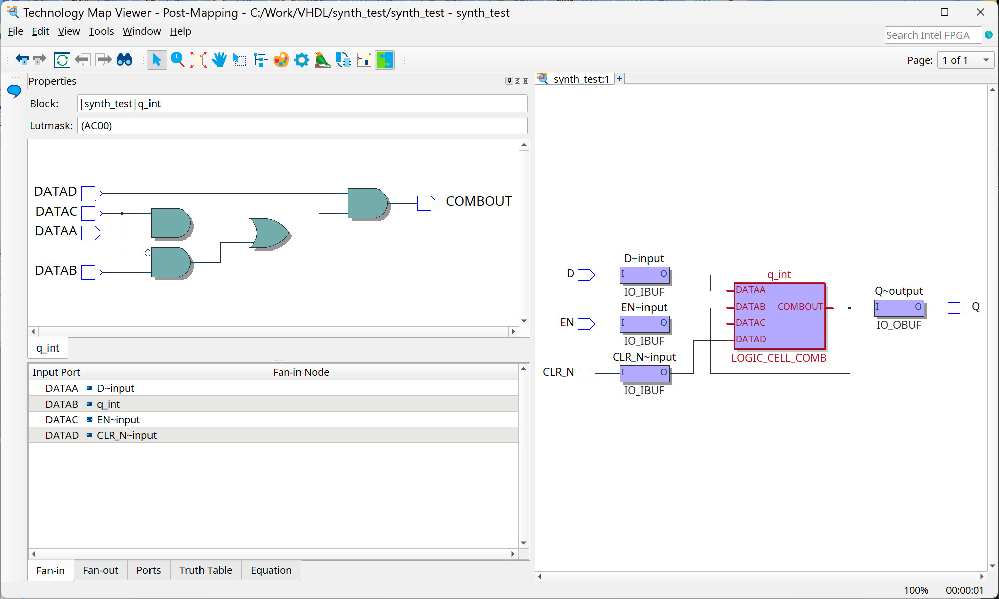 Figure: Post-Mapping Viewer of a D-type latch with enable and asynchronous active-low clear
