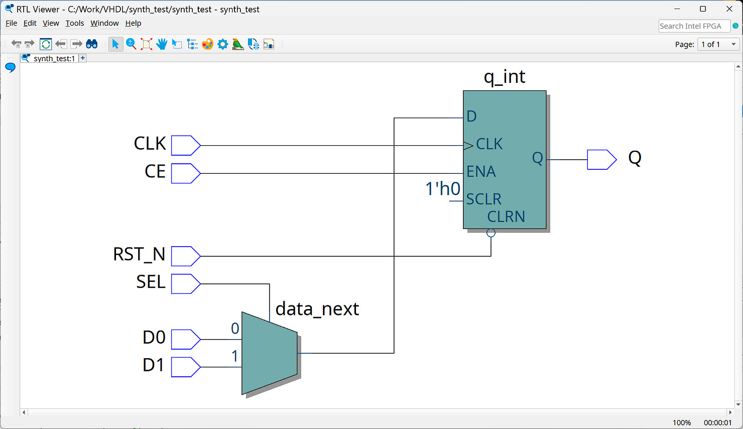 The following is the entity declaration of an example design (MUX2_1 + DFF):