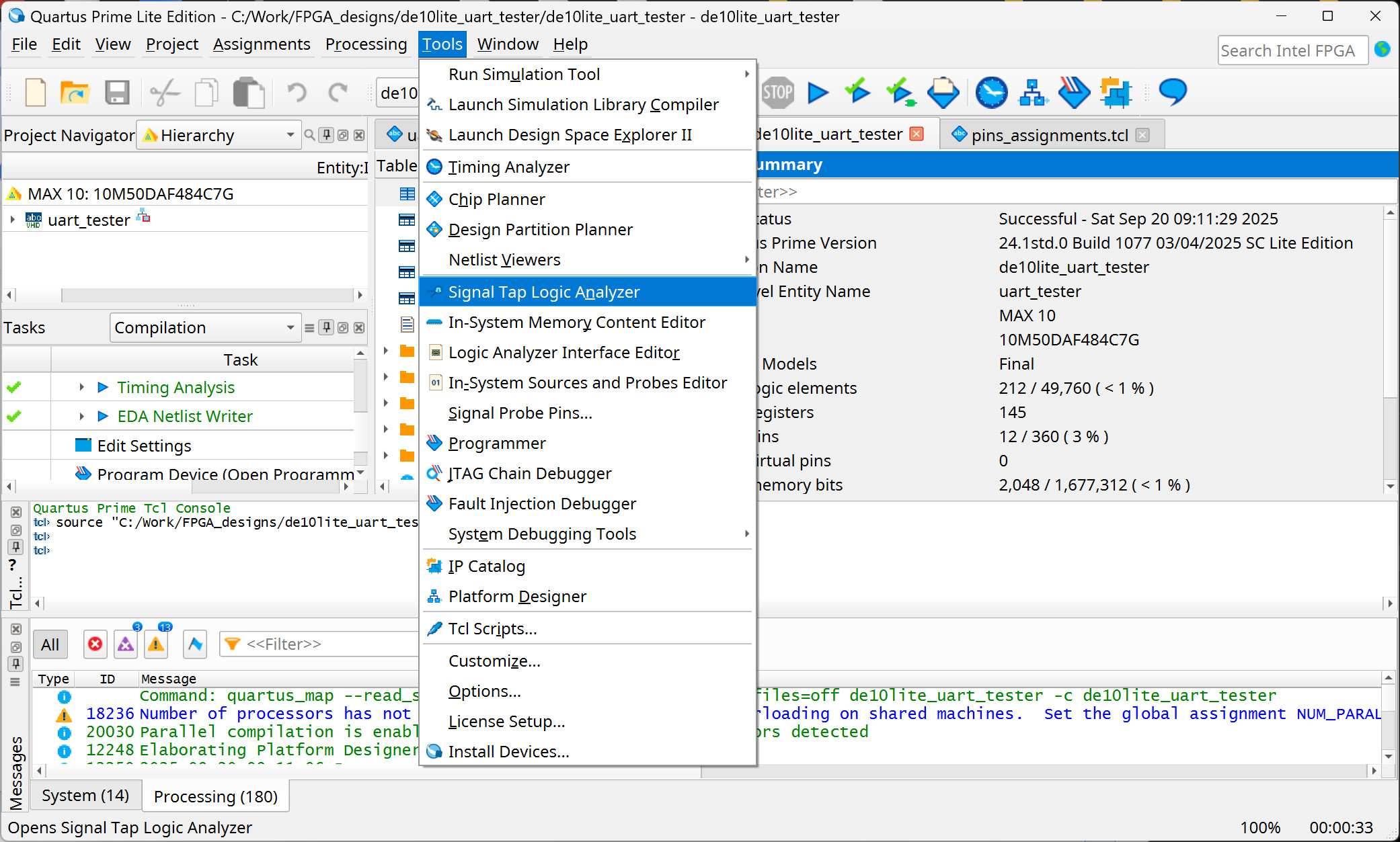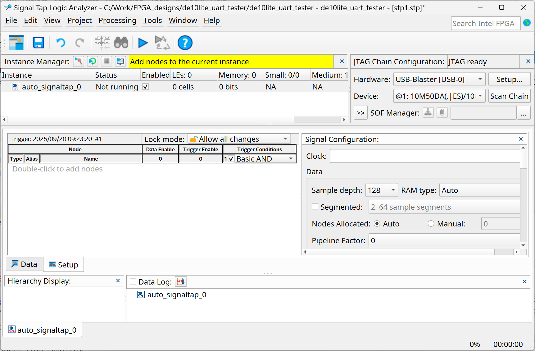 - Go to "Tools > Signal Tap Logic Analyzer".