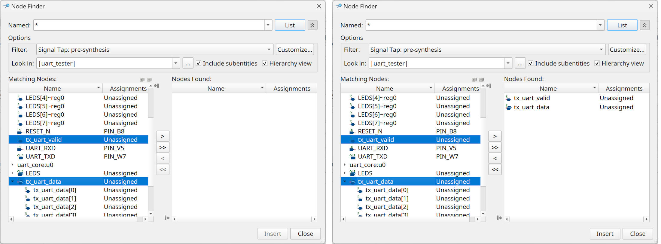 tx_uart_validandtx_uart_data) and click the Insert buttton.