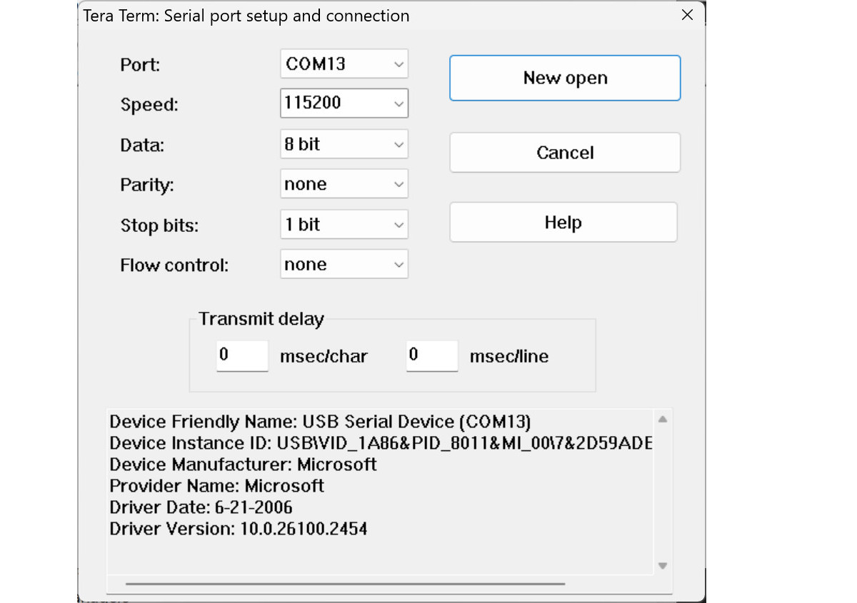 port="/dev/ttyACM0", # specify the serial port (e.g. 'COM13' on Windows)