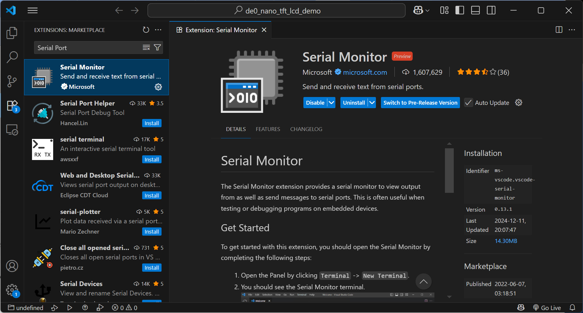 pyserialpackage for serial communication. Make sure that this package is installed, for example, by using the following pip command: