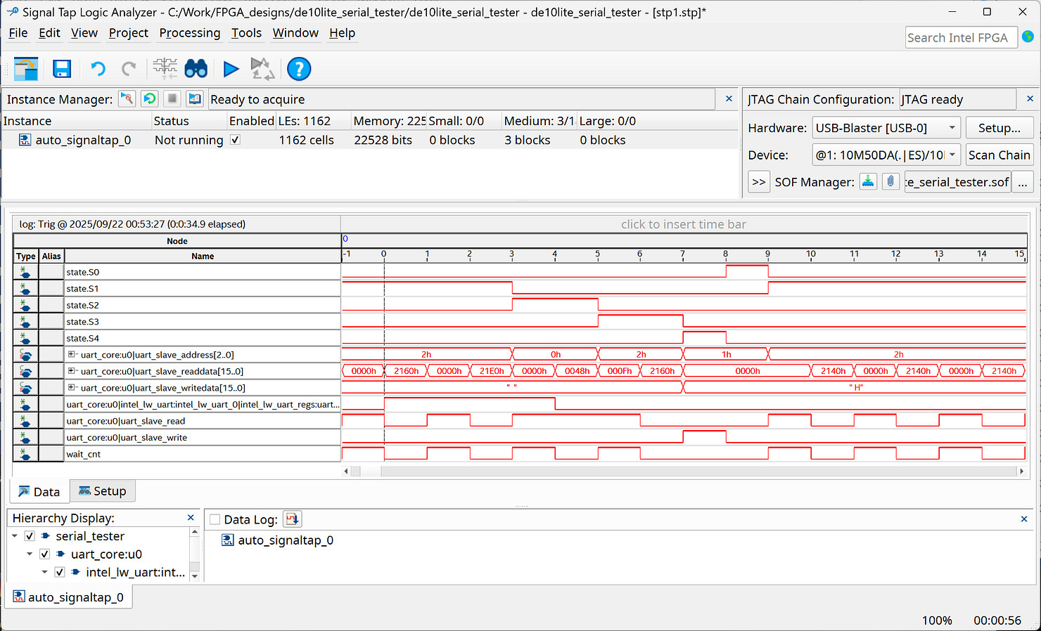 Figure: Using Signal Tap Logic Analyzer to analyze the design.