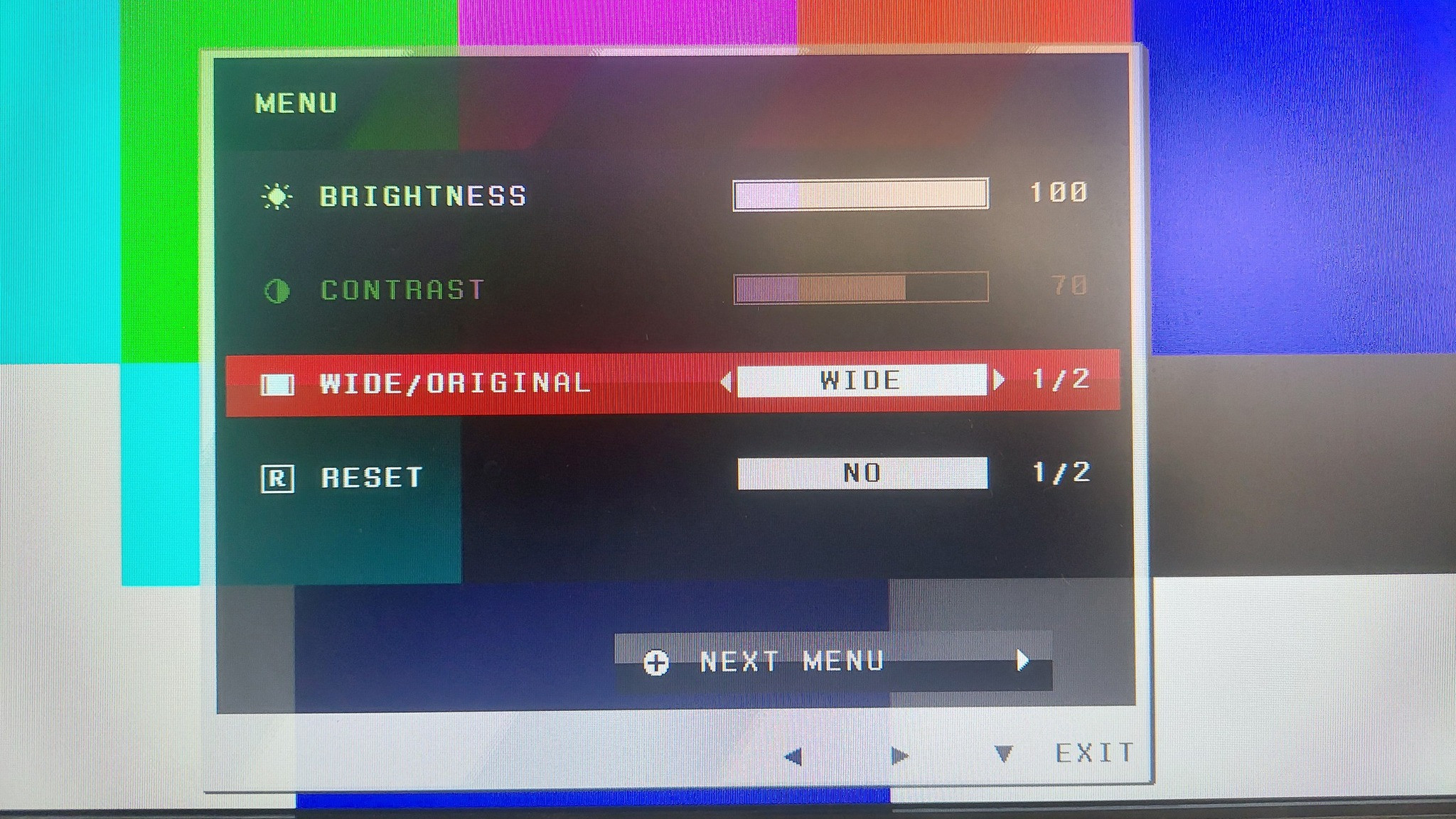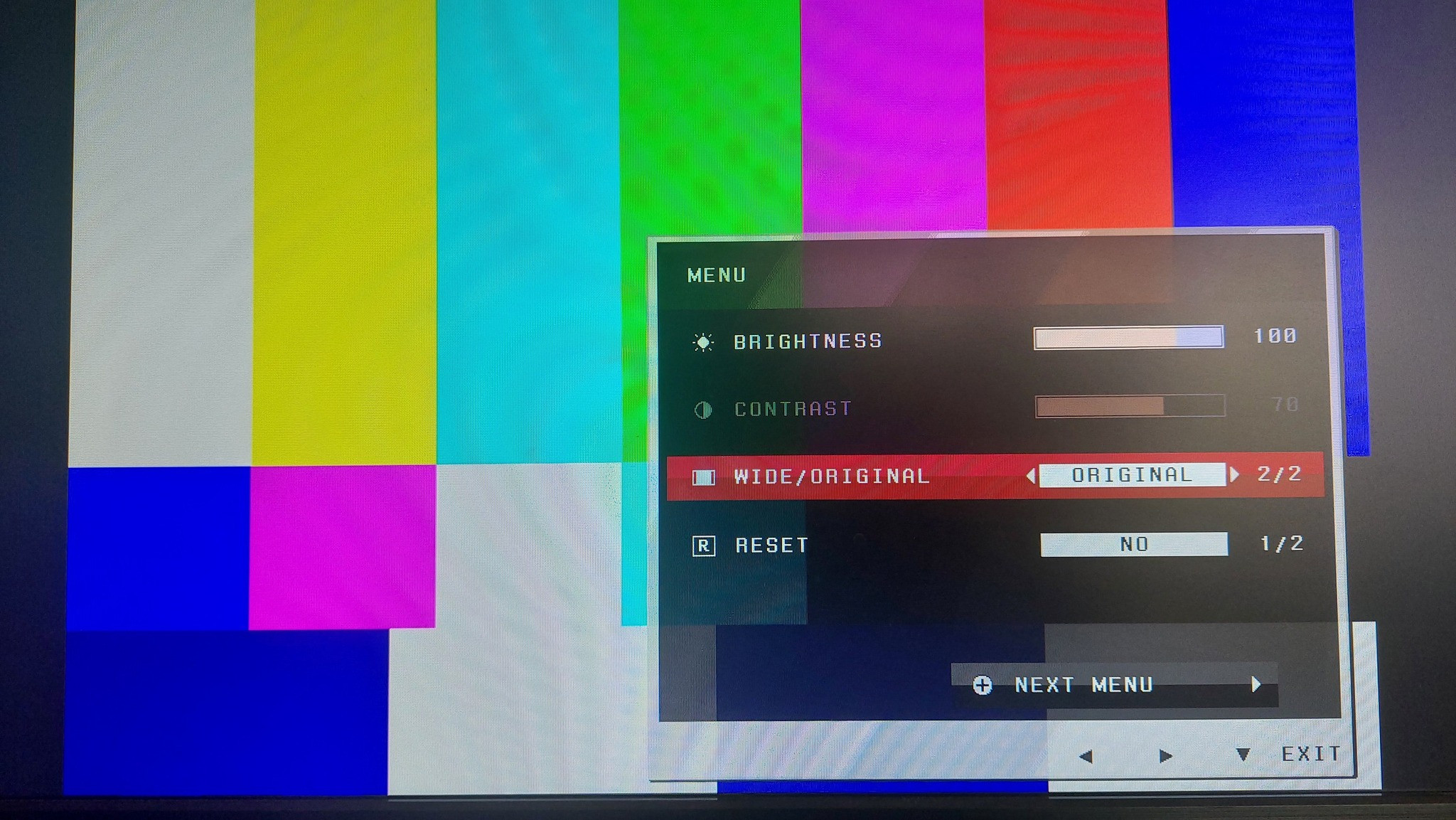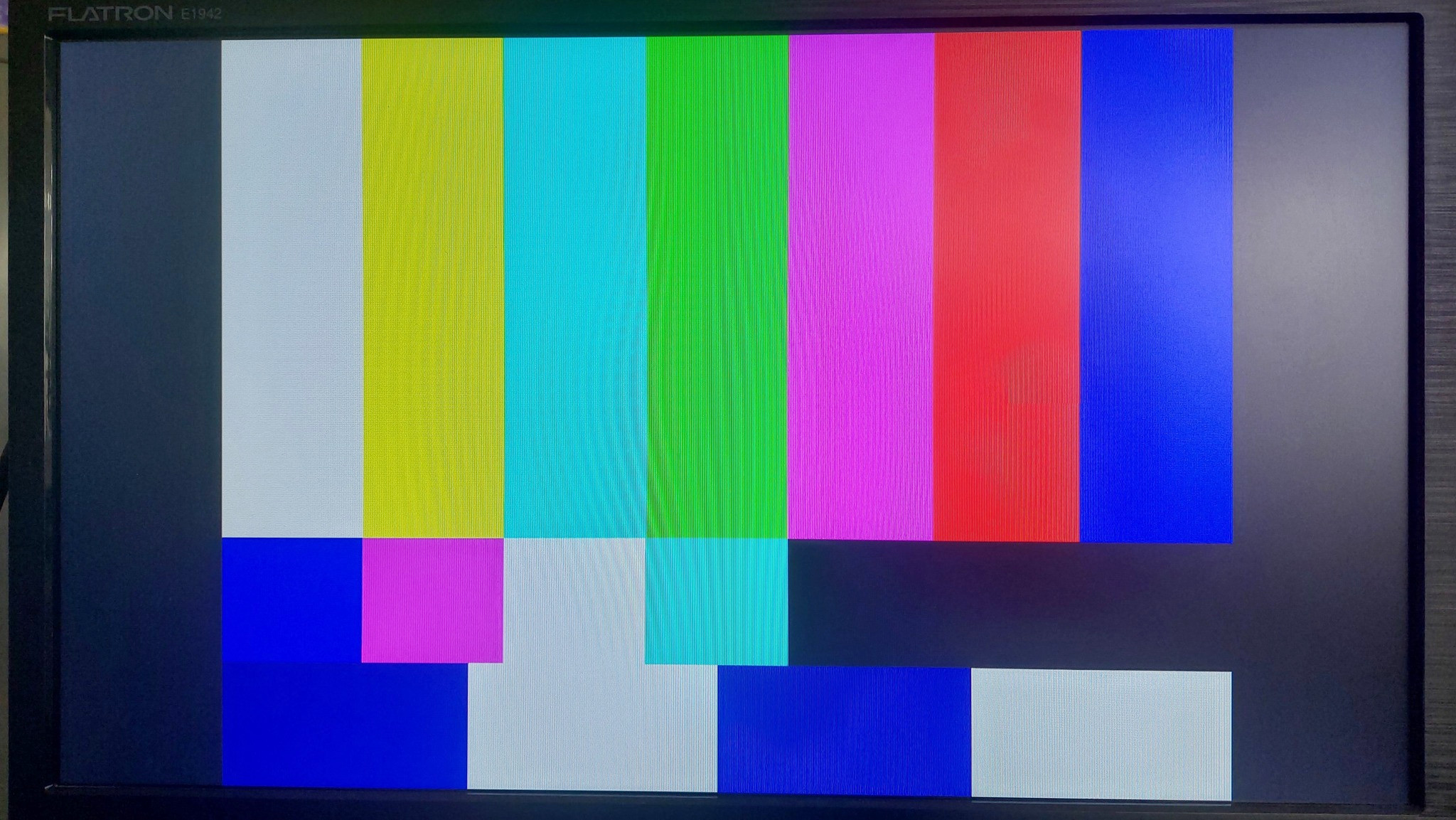 - Top 2/3: Seven vertical color bars (white, yellow, cyan, green, magenta, red, blue).