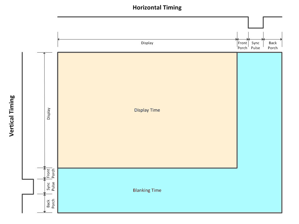 - Vertical Visible Area (Active Video): The period when the full frame of pixels is displayed.