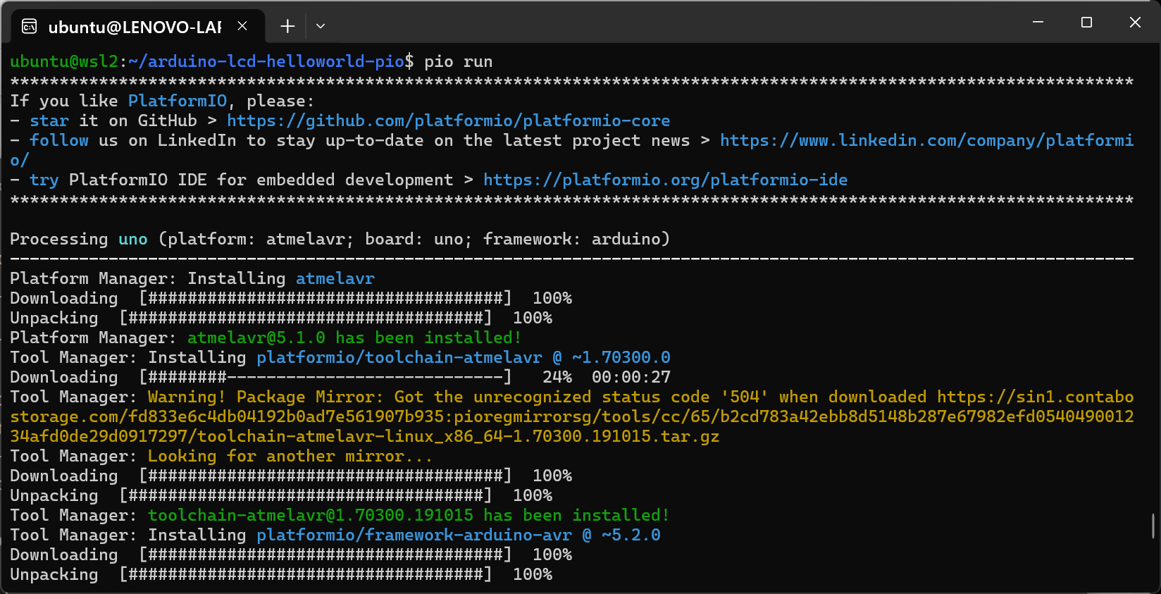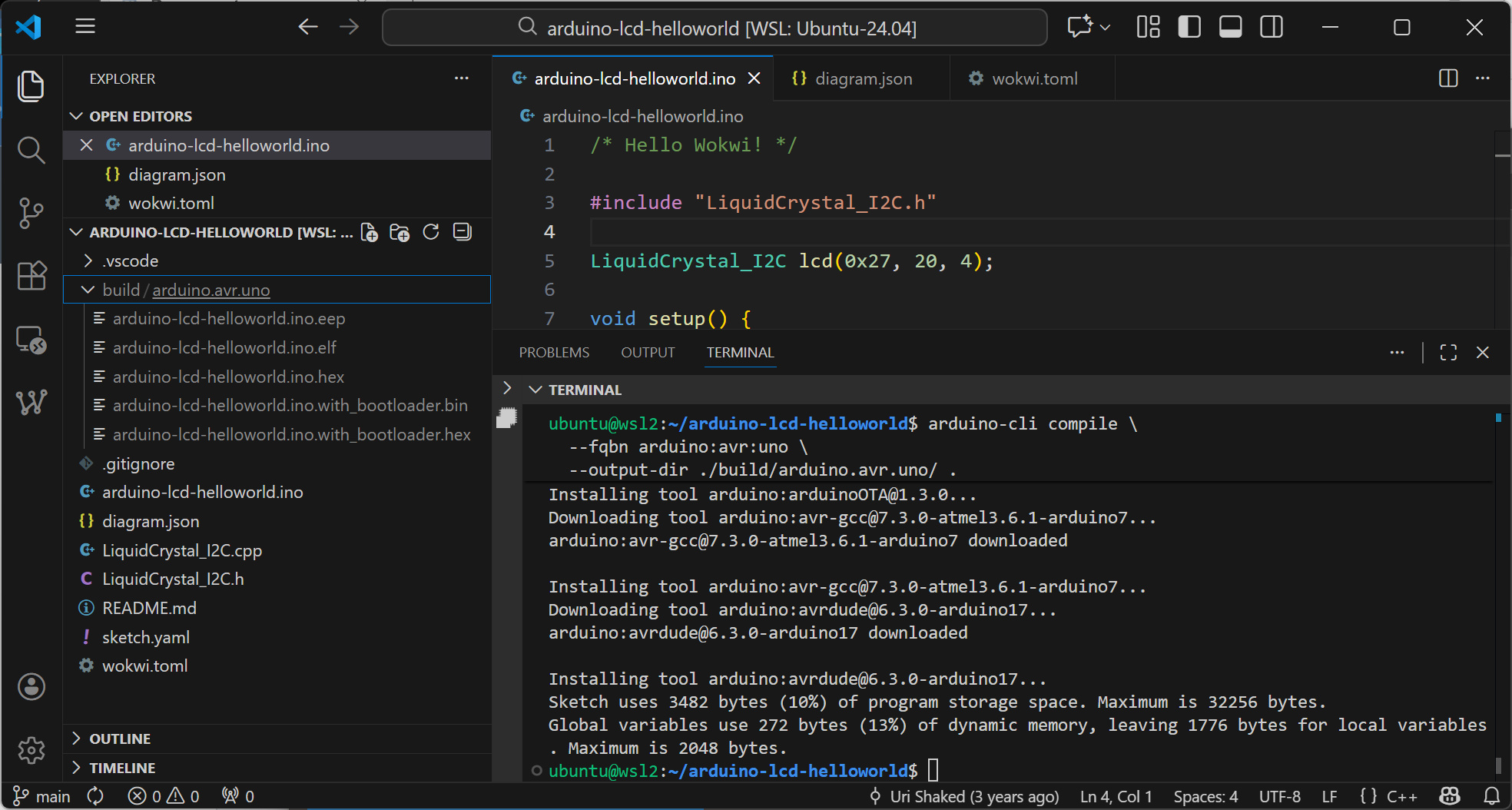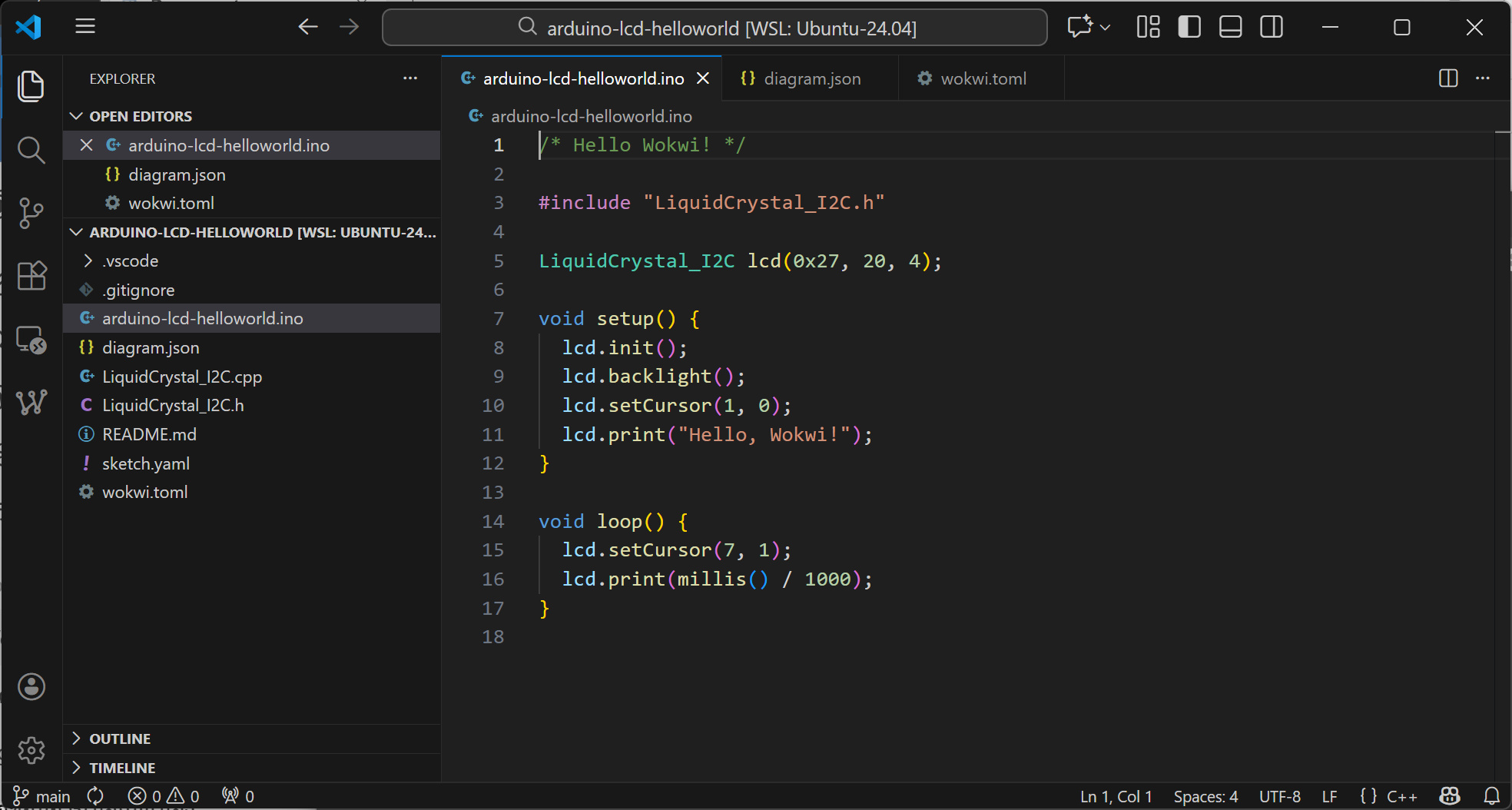$ git clone https://github.com/wokwi/arduino-lcd-helloworld