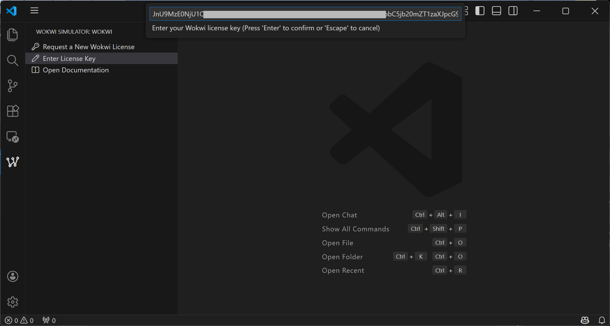 รูป: การนำ Wokwi License Key มาใช้กับ Wokwi Simulator